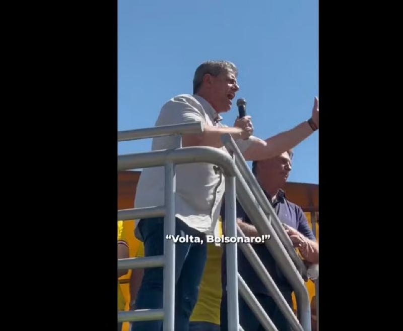 Em meio às críticas, neste domingo (28), o governador acompanhou Bolsonaro em ato em Ribeirão Preto (SP) e postou um vídeo no X no qual afaga o ex-presidente, entoando um coro de “Volta, Bolsonaro.”