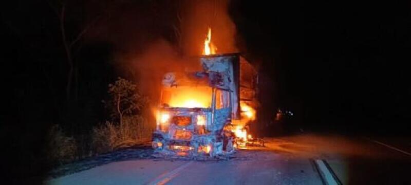 Um caminhão carregado com agrotóxicos e veneno pegou fogo na madrugada desta segunda feira (18), na serra de São Vicente, próximo a Cuiabá. Apesar do susto, o motorista não teve ferimentos.