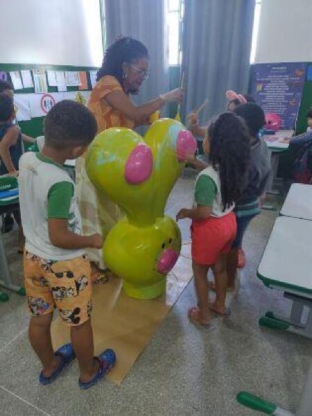 Esculturas de cabeças de coelho foram disponibilizadas para as escolas, que foram desafiadas a personalizá-las utilizando materiais escolares. A proposta é que cada escola use sua imaginação para criar uma obra única, seguindo os critérios do regulamento do concurso.