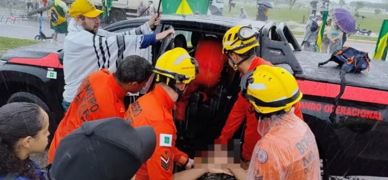 Manifestantes ficaram feridos e tiveram de ser levados a hospitais públicos de Brasília, na tarde deste domingo (25), após serem atingidos pela descarga elétrica de um raio.