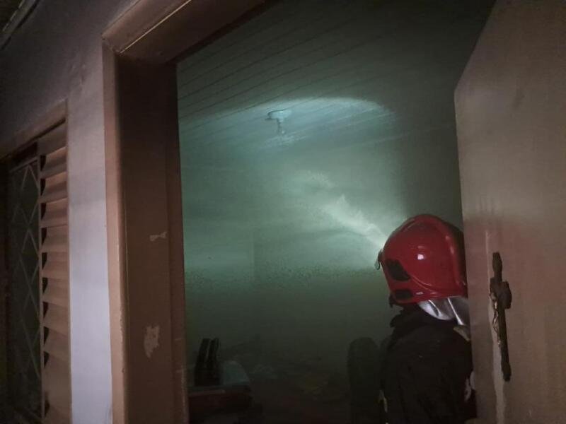 No local, a equipe verificou que as chamas atingiram a cozinha e a área de serviço e que estava se propagando para os outros cômodos da residência.