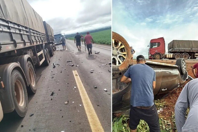 Com o impacto, a caminhonete capotou e foi arremessada para o lado oposto da rodovia, parando em meio a uma plantação. Equipes de resgate foram acionadas e constataram a morte da mulher e de uma criança ainda no local.