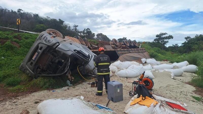 Um motorista de 37 anos, que não teve o nome divulgado, morreu após uma carreta carregada com adubo tombar, em trecho da BR-163, na Serra do Cachimbo, em Guarantã do Norte (a 715 km de Cuiabá), nessa sexta-feira (23).