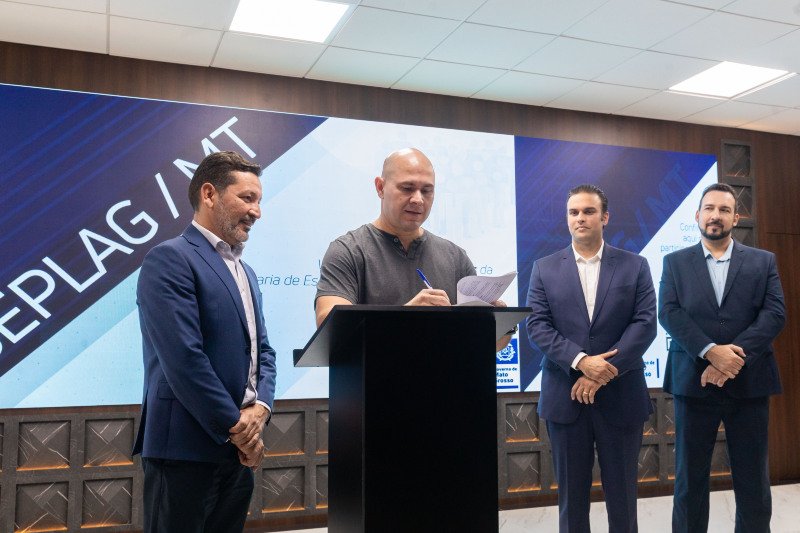 O prefeito Abilio Brunini e o secretário de Planejamento Estratégicos, Murilo Bianchini, assinaram na manhã desta segunda-feira (24) um protocolo de intenções com o governo do Estado, que vai permitir ao município receber informações do Estado a respeito de boas práticas de execução das políticas públicas, convênios, termos de cooperação, e outros assuntos relacionados a administração pública.