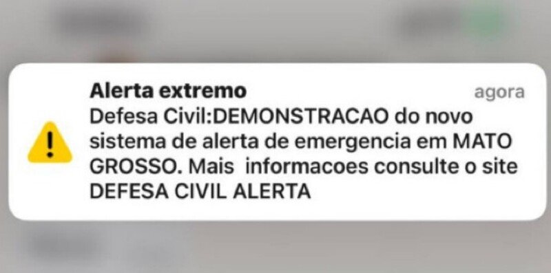 O novo sistema de alerta de emergência da Defesa Civil, o Defesa Civil Alerta, foi testado às 14h deste sábado (27) e causou um grande susto em moradores de Cuiabá e outras cidades. A ação, que enviou um sinal sonoro alto e uma vibração para celulares, tinha caráter estritamente de demonstração, mas a emissão simultânea pegou muitos cidadãos de surpresa.