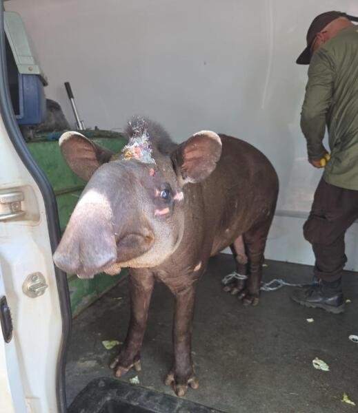 A anta fêmea, carinhosamente conhecida como “Consuelo”, foi resgatada há mais de um ano, ainda filhote e sem a companhia da mãe, na BR-163. Após ter sido encontrada pela concessionária da rodovia, ela passou por cuidados médico veterinários e nutricionais no Centro de Triagem de Animais Silvestres (Cetas) de Lucas do Rio Verde.
