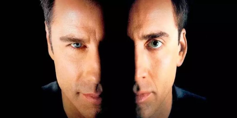 Em A Outra Face, Cage interpreta o terrorista Castor Troy, que é caçado pelo agente do FBI Sean Archer (Travolta). Quando ele é capturado e cai em um coma, Archer "empresta" o seu rosto para descobrir mais sobre o último plano do terrorista - mas Castor, é claro, acorda e acaba assumindo a identidade do agente.