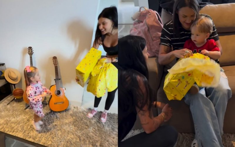 Na última terça-feira (21), Zé Felipe, 27, compartilhou um momento especial nas redes sociais envolvendo a namorada, Ana Castela, 21, e os filhos que teve com a influenciadora Virgínia Fonseca. A cantora, conhecida como “boiadeira”, surpreendeu as crianças com presentes e ganhou a simpatia dos pequenos.