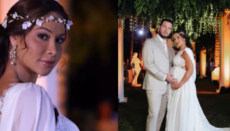 A escolha do vestido foi um dos momentos mais encantadores da noite. Maíra deslumbrava em um modelo fluido, todo branco, com delicadas aplicações de flores de tecido que realçaram sua barriga de grávida, já que ela está na reta final da gestação de sua filha. A elegância e a felicidade do momento eram evidentes, e ela compartilhou sua alegria nas redes sociais com seus seguidores.