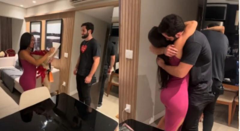 No vídeo, publicado na noite de terça (14), Matteus entrega um buquê de rosas vermelhas e uma carta à Isabelle, ao som da música “Não Sei Se Tô Solteiro”, de Matheus e Kauan e Maiara e Maraisa.