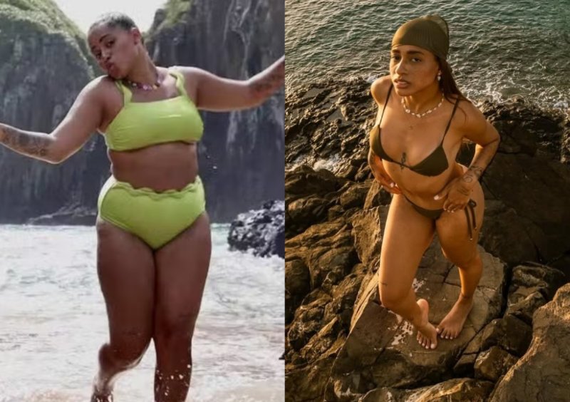 A cantora MC Lomma, de 22 anos, encantou os fãs nesta quinta-feira (9) ao compartilhar fotos de biquíni fio-dental nas paisagens paradisíacas de Fernando de Noronha. Exibindo o corpo definido, a artista mostrou o resultado da perda de 17 kg, após passar por uma lipoaspiração e uma mastopexia — procedimento que remodela os seios e inclui próteses de silicone.