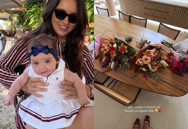 Além do presente, Rafa também dividiu registros de Zuza Helena, que viveu a data pela primeira vez. Nos cliques, a bebê aparece no colo da mãe, encarando a câmera e chamando atenção pela produção escolhida para o momento.