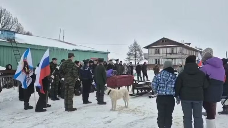No funeral, em novembro de 2024, as pessoas só conseguiram chegar ao cemitério de moto de neve, e o caixão de Akeev foi transportado em largos trenós de madeira.