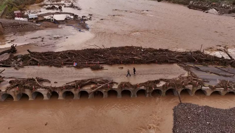A tempestade também causou danos em uma ponte sobre o rio Enipeas.