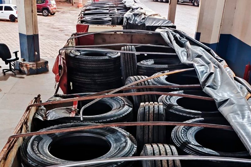 A abordagem ocorreu durante uma fiscalização de rotina da PRF, quando os agentes pararam uma carreta que trafegava pela rodovia com os eixos suspensos, simulando estar vazia, no trajeto entre Ponta Porã (MS) e Cuiabá. O motorista informou que havia levado uma carga de grãos para o estado vizinho e retornava vazio. No entanto, ao vistoriarem o semirreboque, os policiais constataram a presença de diversos pneus, o que levantou suspeitas sobre a origem da mercadoria.
