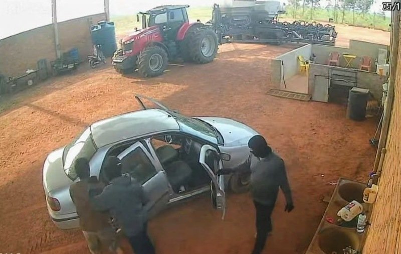 Segundo informações preliminares, a dupla chegou à propriedade por volta das 8h, rendeu um funcionário e o amarrou. Em seguida, foram até a sede da propriedade onde a família estava. A esposa do proprietário foi dominada e mantida sob mira de arma de fogo dos bandidos.