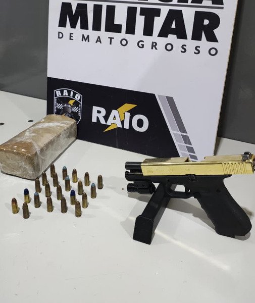 Policiais militares da Companhia Independente de Rondas e Ações Intensivas e Ostensivas do 1º Comando Regional apreenderam, nesta sexta-feira (05.12), uma arma de fogo, 22 munições e um tablete de substância análoga à maconha, durante abordagem a uma residência no bairro Jardim Potiguar, em Várzea Grande.