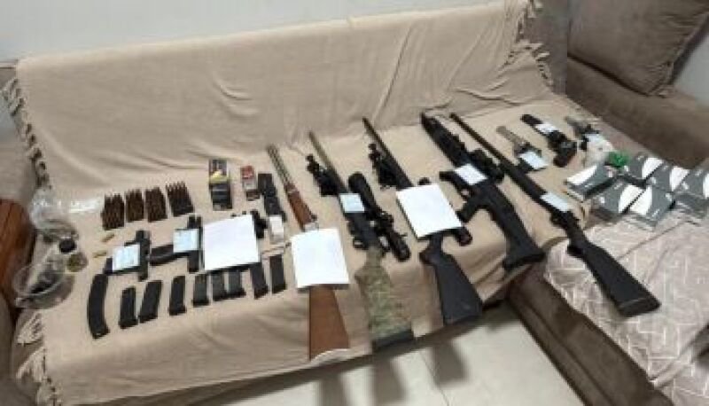 A ação resultou na prisão em flagrante de um homem, de 46 anos, pelo crime de posse ilegal de munição de uso restrito, e na apreensão de 7 revólveres, 10 armas longas e 3 pistolas, além de grande quantidade de munições e equipamentos relacionados à fabricação e recarga de munições.