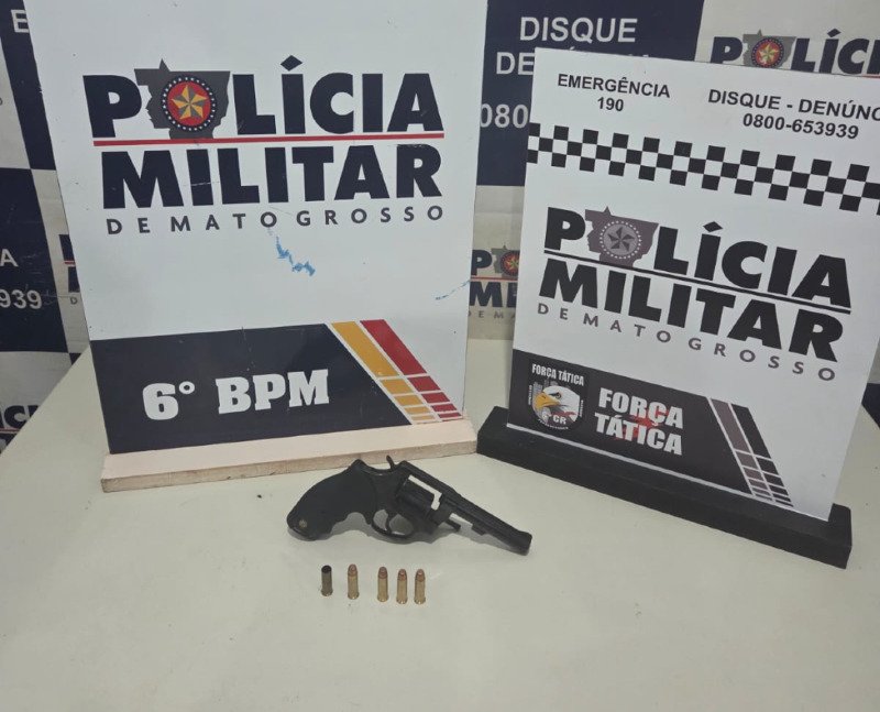 Policiais militares do 6º Batalhão apreenderam, nesta segunda-feira (9.2), um adolescente e prenderam um homem suspeitos por porte ilegal de arma de fogo, em Cáceres (220 km de Cuiabá). As equipes localizaram um revólver calibre .38 com cinco munições.