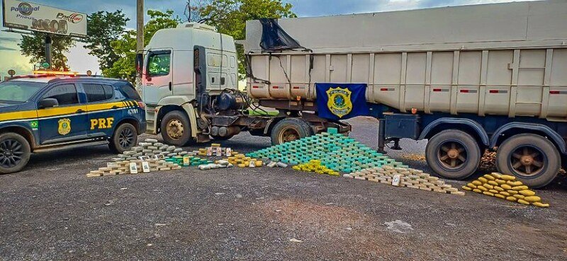 A Polícia Rodoviária Federal (PRF) apreendeu uma grande quantidade de entorpecentes na tarde desta quinta-feira (18), durante fiscalização realizada na BR-070, em Várzea Grande (MT). A ocorrência foi registrada no km 540, após a abordagem a uma combinação veicular composta por caminhão trator Volkswagen 19.320 e semirreboque Noma.