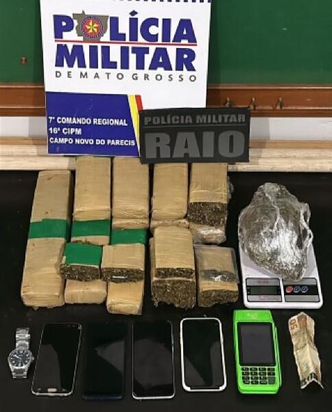 Três mulheres e um homem foram presos em flagrante, na noite desta terça-feira (14.05), suspeitos por formação de quadrilha e tráficos de drogas, no município de Campo Novo do Parecis (394 km de Cuiabá). Policiais militares da 16ª Companhia Independente apreenderam diversos tabletes de maconha pesando quase oito quilos, quatro celulares, uma máquina de cartão, uma balança de precisão, um relógio e R$ 50 em espécie. Entre os envolvidos estavam mãe e filha.