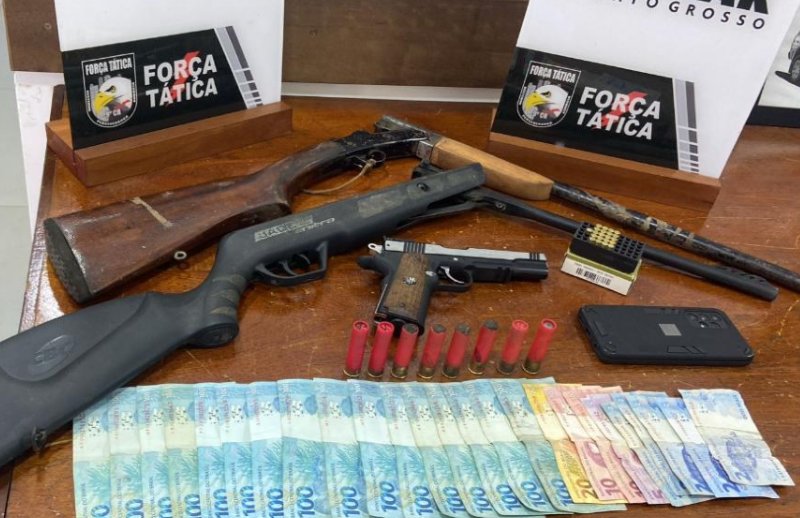 Policiais militares da Força Tática do 9º Comando Regional prenderam um homem, de 69 anos, pelos crimes de ameaça e porte ilegal de arma, nesta quarta-feira (29), em Alta Floresta. O suspeito foi preso em flagrante após ameaçar sua esposa e filho com os objetos. Com ele, foram apreendidas duas espingardas e uma pistola de airsoft.