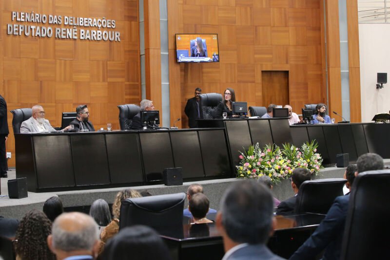 A Assembleia Legislativa de Mato Grosso (ALMT) realizou sessão especial na noite desta terça-feira (16) para homenagear 92 personalidades com honrarias. A iniciativa foi da deputada Janaina Riva (MDB), que concedeu títulos de cidadão mato-grossense e moções de aplausos para 92 pessoas da Igreja de Convenção Batista Nacional (IBN).