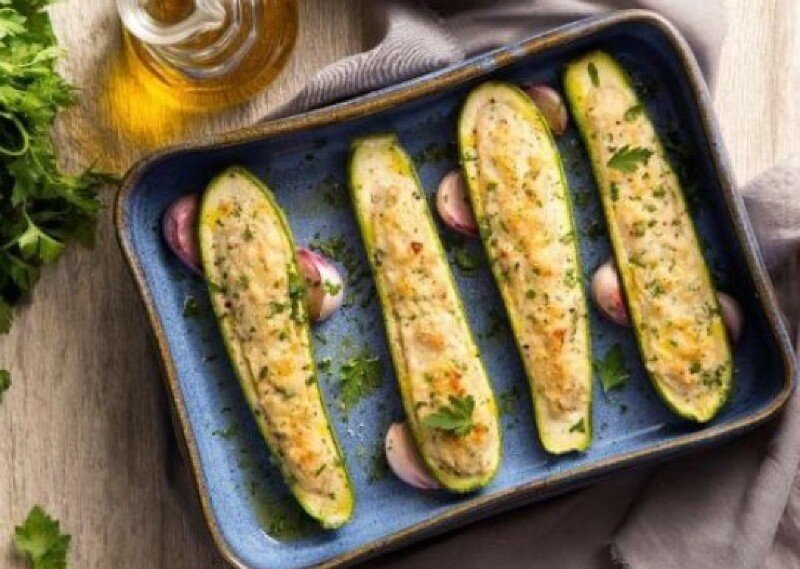 - Recheie as metades de abobrinhas com a mistura pronta.
