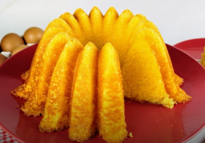 - Transfira para uma forma redonda de 25 cm de diâmetro, untada com manteiga e um pouco de fubá. Leve ao forno a 180ºC por cerca de 50 minutos;