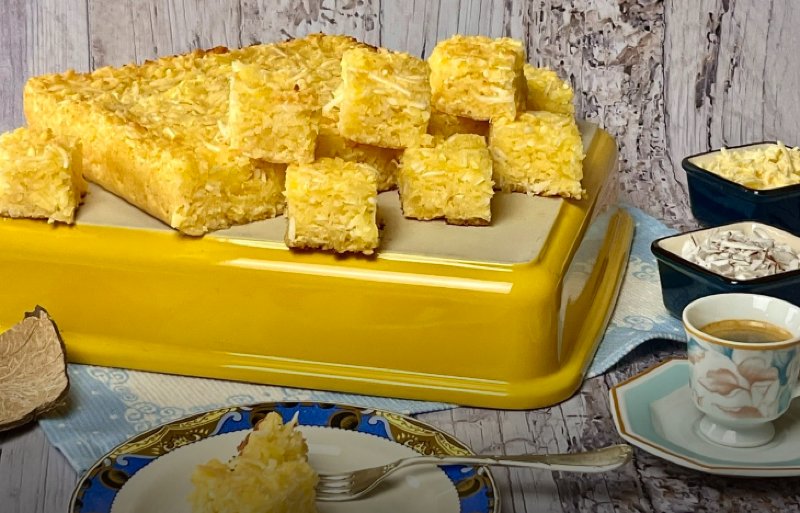 - Adicione a mandioca, o queijo, o coco e o leite. Misture bem, para que os ingredientes se distribuam de maneira uniforme. Por fim, acrescente o fermento e mexa delicadamente, apenas para incorporar;