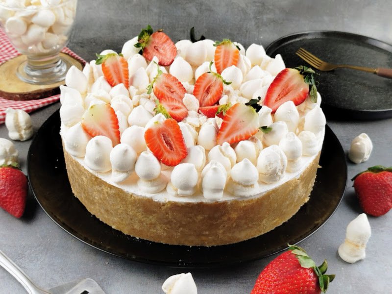 - Decore com suspiros inteiros, suspiros triturados e mais morangos. Sirva bem gelada e aproveite essa sobremesa linda e cremosa!