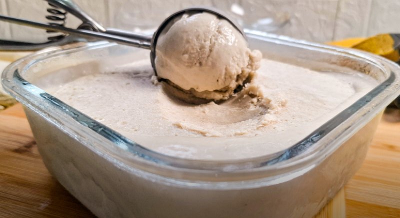- Retire e sirva, aproveitando o sabor e a cremosidade desse sorvete de banana com leite em pó!